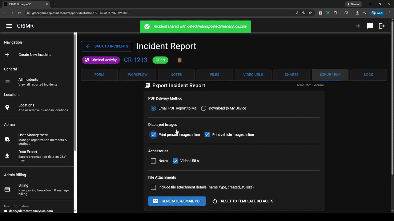 Export and share your incident report PDFs with anyone in 15 seconds